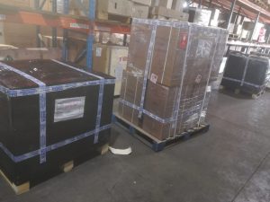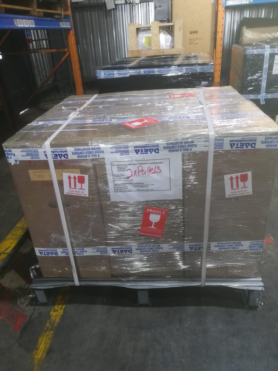 Find below photos of the consignment of equipment in transit through our freighting partner in South Africa.